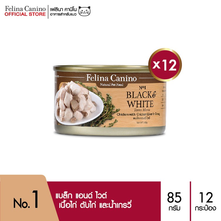 สั่งซื้อ Felina Canino (อาหารสำหรับแมว) : Black & White (แบล็ก แอนด์ ไวต์) แพค 12 กระป๋อง