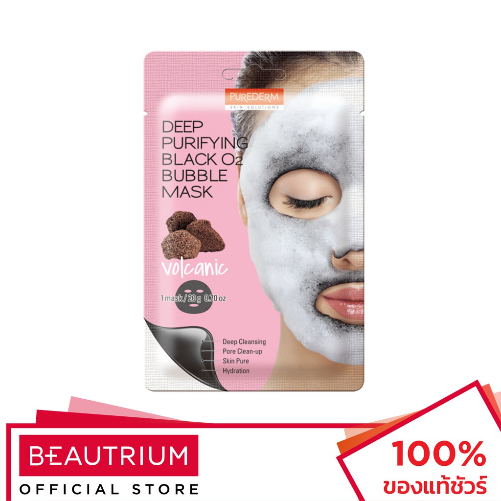 สั่งซื้อ PUREDERM Deep Purifying Black O2 Bubble Mask Volcanic แผ่นมาส์กหน้า 20g