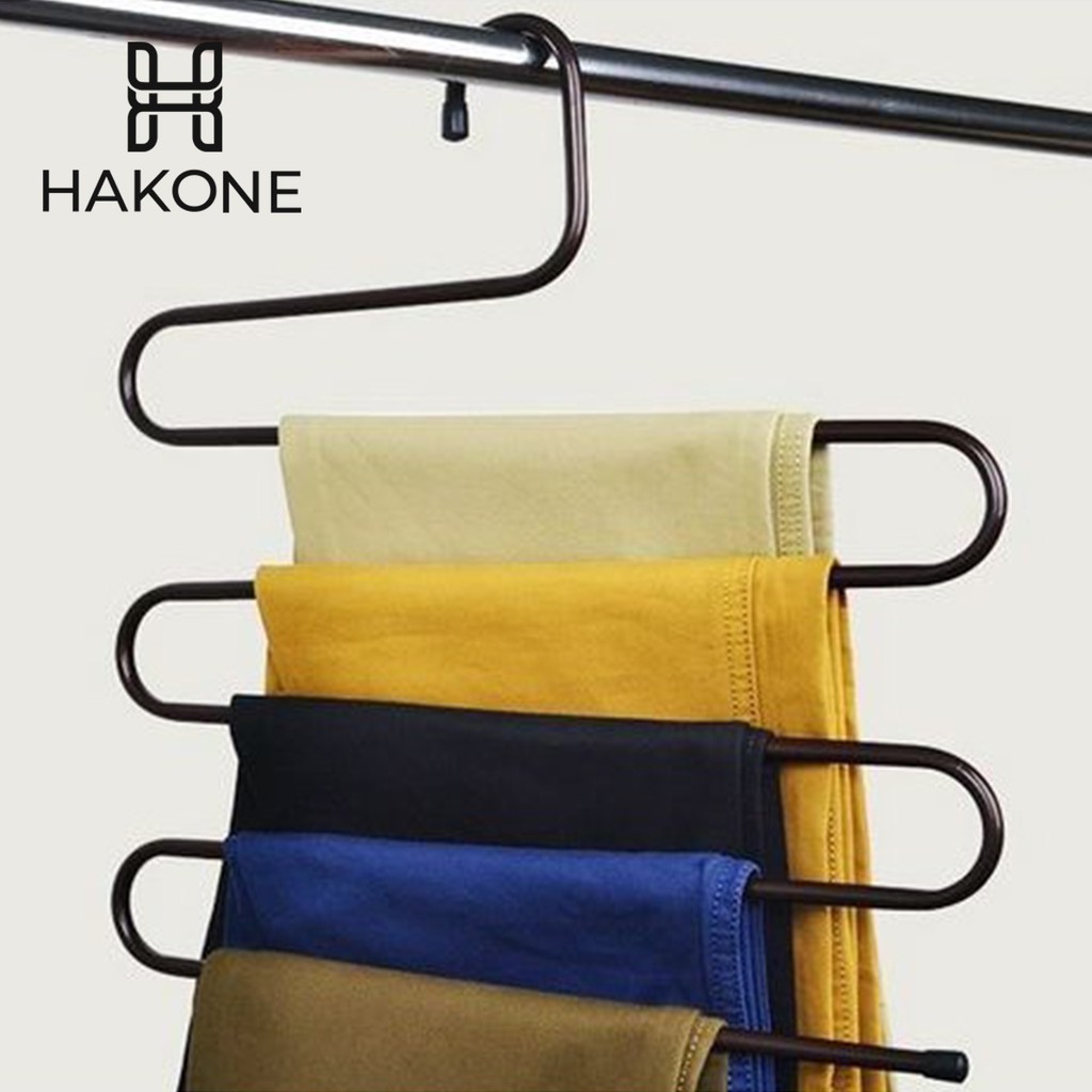สั่งซื้อ [2 สี] HAKONE ไม้แขวนกางเกง สแตนเลส แขวนกางเกง 5 ตัว ประหยัดพื้นที่ แขวนผ้าพันคอ เข็มขัด trousers ha