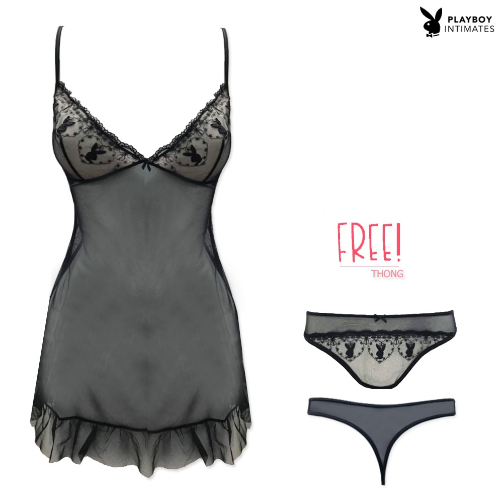 สั่งซื้อ Playboy intimates Bonita Nightwear เซ็ตชุดนอนเซ็กซีผ้าซีทรู ฟรีกางเกงชั้นใน Thong