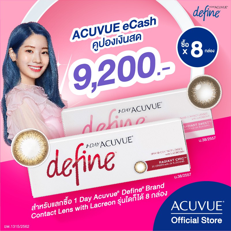 ภายในไม่กี่วัน [E-COUPON] ACUVUE คูปองเงินสดสำหรับแลกซื้อ คอนแทคเลนส์ 1 Day ACUVUE Define 8 กล่อง จะถูกส่งมาถึงบ้านคุณ