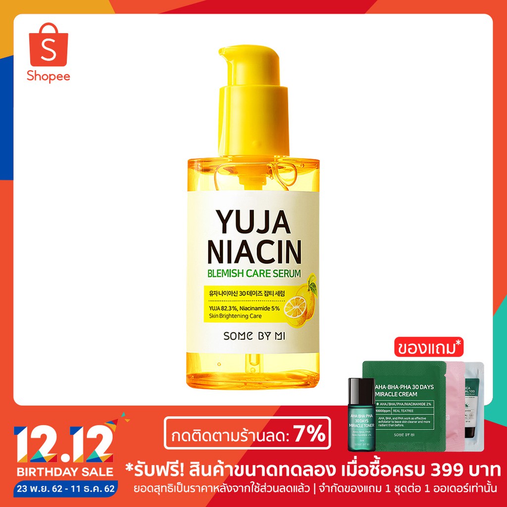 *รับฟรี! สินค้าขนาดทดลอง เมื่อซื้อครบ 399 บาท ยอดสุทธิเป็นราคาหลังจากใช้ส่วนลดแล้ว | จำกัดของแถม 1 ชุด ต่อ 1 ออเดอร์ เท่านั้น วันที่ 23 พ.ย. 62 - 11 ธ.ค. 62 เท่านั้น สินค้าของแถม ได้แก่ 1.SOME BY MI AHA-BHA-PHA 30DAYS MIRACLE TONER 6ML 2.SOME BY MI AHA-BHA-PHA 30DAYS MIRACLE CREAM (POUCH SAMPLE) 3.SOME BY MI ROSE INTENSIVE TONE-UP CREAM (POUCH SAMPLE) 4.SOME BY MI TRUECICA MINERAL 100 CALMING SUNCREAM (POUCH SAMPLE) SOME BY MI YUJA NIACIN BLEMISH SERUM ใหม่! เซรั่มจากสารสะกัดผลยูจา ช่วยบำรุงเฉพาะจุด เพื่อความกระจ่างใส อีกทั้งยังเติมเต็มสารอาหารให้แก่ผิว และยังมีไนอะซินอาไมด์ 5% ที่มีประสิทธิภาพในการปรับผิวขาว ช่วยในการลดเลือนฝ้ากระ