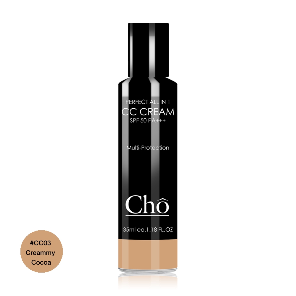 Cho Perfect All in 1 CC Cream SPF50/PA++ 35ml #CC03 Creammy Cocoa เผยผิวสวยอย่างเป็นธรรมชาติ ด้วยซีซีครีมจากโช เนื้อบางเบา นุ่มลื่น เกลี่ยง่าย ช่วยปรับผิวให้เรียบเนียนกระจ่างใส พร้อมปกป้องผิวจากแสงแดด และบำรุงผิวอย่างอ่อนโยน.