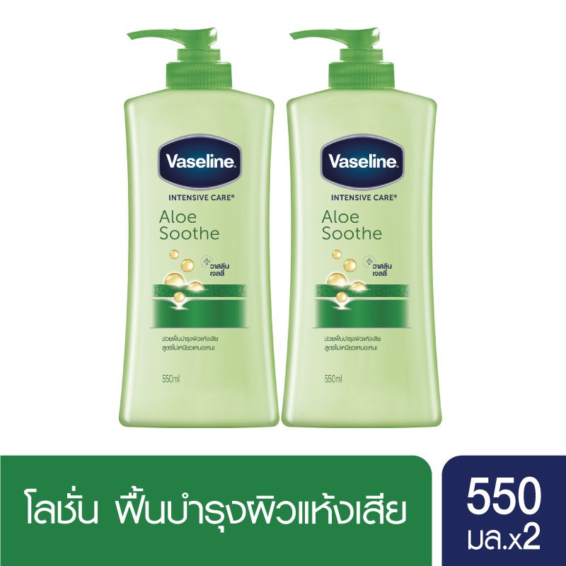 สั่งซื้อ Vaseline Aloe Soothe Lotion Green 550 ml. (2 pcs) วาสลีน อโล ซูธ โลชั่น เขียว 550 มล (2 ขวด) UNILEVE