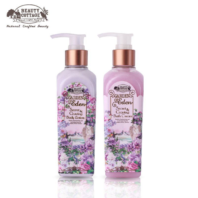 สั่งซื้อ [ซื้อคู่ราคาพิเศษ] BEAUTY COTTAGE GARDEN OF EDEN SECRET&CRAVING BODY LOTION+BATH CREAM การ์เด้นออฟอ
