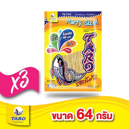 สั่งซื้อ [แพ็ค3] ทาโร ปลาเส้น 64 กรัม เลือกรสได้
