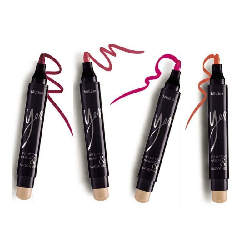 ลิปมาร์คเกอร์ มิสทีน เยส อิทส์ ลิป ทินท์ มาร์คเกอร์ แอนด์ สมูธเตอร์ ขนาด 4.3 กรัม มี 4 สีให้เลือกสวย 01 สีแดง 02 สีพีช 03 สีชมพู 04 สีส้ม สร้างเทรนด์ใหม่ กับการทาปากที่สามารถเนรมิตลูกเล่น และ เฉดสีบนริมฝีปากได้ถึง 10 แบบ 10 สไตล์ ที่ใครเห็นต้องร้อง ว้าววว !! ด้วยลิปทินท์รูปแบบใหม่ 2 เนื้อในแท่งเดียว ด้าน Tint Marker ดีไซน์สุดเก๋ในรูปแบบหัวปากกาเมจิก เขียนง่าย ให้สีสดชัดทันทีที่ดา ด้วยสูตรพิเศษอัดแน่นด้วยเนื้อสีแบบสุดๆ ผสานคุณสมบัติการสร้างฟิล์มสีเคลือบแบบสนิท และติดทนนาน แต่ไม่ทิ้งความเหนียวเหนอะหนะ ด้ย Air Fix Film พร้อมการบำรุงจาก Sodium Hyaluronate ช่วยเพิ่มความชุ่มชื้น เปล่งปลั่งให้แก่ริมฝีปาก ด้าน Smoother ลิปบาล์มสีนู้ดที่ช่วย Blend สีลิปสติกให้ดูไล่ระดับ จึงสร้างสรรค์รูปแบบความงามของสีสันบนริมฝีปากได้หลากหลายตามต้องการ พร้อมเติมความฉ่ำวาวให้ริมฝีปากดูระเรื่อด้ย Smoothing Film ผสานคุณค่าการบำรุงจาก Shea Butter และ Aloe Buter ช่วยเพิ่มความชุ่มชื่น จึงทำให้ริมฝีปากเนียนนุ่ม เปล่งประกายสวยใส ดูสุขภาพดี