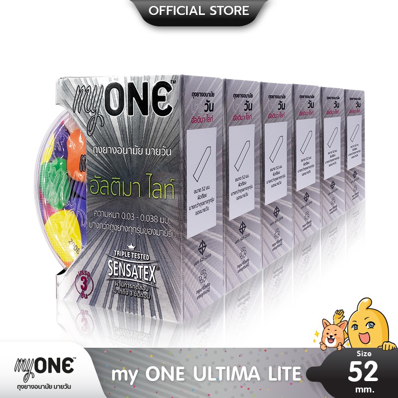 ขาย myONE ULTIMA LITE ถุงยางอนามัย แบบบาง 0.03 ขนาด 52 มม. บรรจุ 6 กล่อง (18 ชิ้น) ราคาถูก