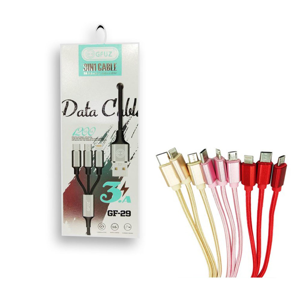 ขาย GFUZ 3 IN 1 CABLEรุ่น GF-29 มาพร้อม หัวชาร์จ 3 หัว Micro / Type-C / Lightning : คละสี ราคาถูก
