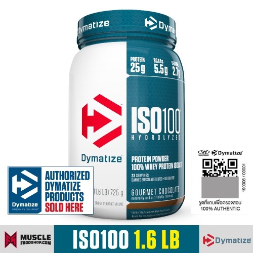 Dymatize ISO100 – Hydrolyzed Whey Protein Isolate ISO100® is simply muscle-building fuel. Each serving contains 25 grams protein 5.5g BCAAs including 2.7g L-Leucine. Known worldwide for quality, taste purity, ISO100 is produced to our highest quality standards. ISO100 is formulated using a cross-flow micro-filtration, -step purification process that preserves important muscle-building protein fractions while removing excess carbohydrates, fat, lactose cholesterol. ISO-100 is with pre-hydrolyzed protein sources to ensure fast digestion absorption. AMOUNTS PER SERVING: • 25g fast digesting whey protein isolate per serving. • 5.5g or more BCAA’s proven to help build muscle aid in recovery. • 2.7g Leucine to support activation Muscle Protein Synthesis. Dymatize ISO100 – ไฮโดรไลซ์ เวย์โปรตีนไอโซเลท ISO100® เป็นเชื้อเพลิงในการเสริมสร้างกล้ามเนื้อ ต่อหนึ่งหน่วยบริโภคให้โปรตีน 25 กรัมและ BCAA 5.5 กรัมรวมถึง L-Leucine 2.7 กรัม เป็นที่รู้จักทั่วโลกในด้านคุณภาพรสชาติและความบริสุทธิ์ ISO100 ผลิตขึ้นตามมาตรฐานที่มีคุณภาพสูงสุด ISO100 ได้รับการพัฒนาขึ้นโดยใช้กระบวนการกรองแบบ micro-flow ซึ่งเป็นขั้นตอนที่ช่วยรักษาโปรตีนที่เป็นส่วนที่สำคัญในการสร้างกล้ามเนื้อในขณะเดียวกันก็ปราศจากคาร์โบไฮเดรต ส่วนเกินไขมัน แลคโตส และคอเลสเตอรอล ISO-100 ผลิตจากแหล่งโปรตีนไฮโดรไลซ์เพื่อให้แน่ใจว่าสามารถย่และดูดซึมเข้าสู่ร่างกายได้่างรวดเร็ว ปริมาณต่อหนึ่งหน่วยบริโภค: • โปรตีนไอโซเลท 25 กรัมต่อสกู๊ป • BCAA 5.5 กรัมหรือมากกว่า ที่ช่วยเสริมสร้างและฟื้นฟูกล้ามเนื้อ • Leucine 2.7 กรัมเพื่อเพิ่มการสังเคราะห์โปรตีนไปเสริมสร้างกล้ามเนื้อ