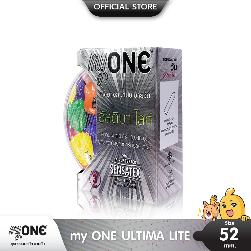 สั่งซื้อ myONE ULTIMA LITE ถุงยางอนามัย แบบบาง 0.03 ขนาด 52 มม. บรรจุ 1 กล่อง (3 ชิ้น)