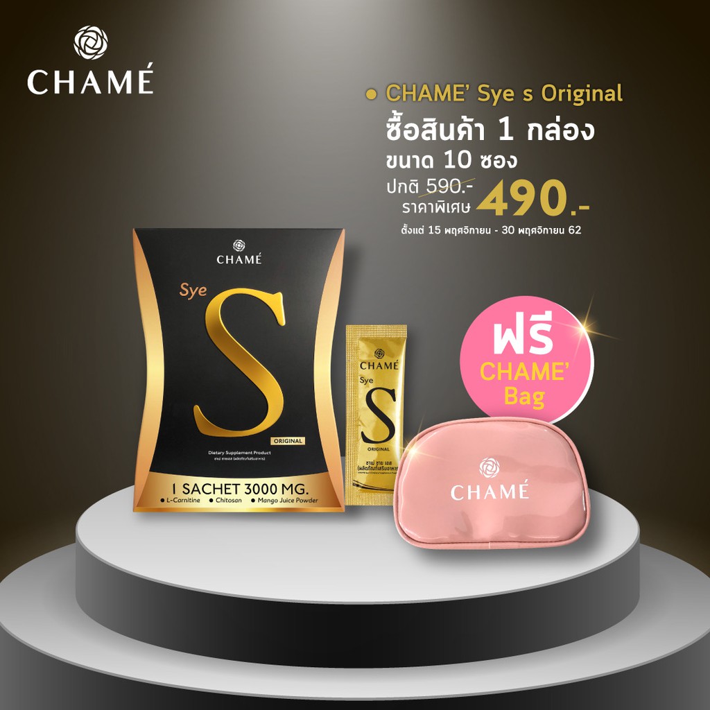ได้ยินมาว่ากำลังสนใจ CHAME' Sye S (ชาเม่ ซาย เอส) 1 กล่อง แถมฟรีกระเป๋าพรีเมี่ยมใช่มั๊ยคะ ตัวนี้คุณภาพมากค่ะ