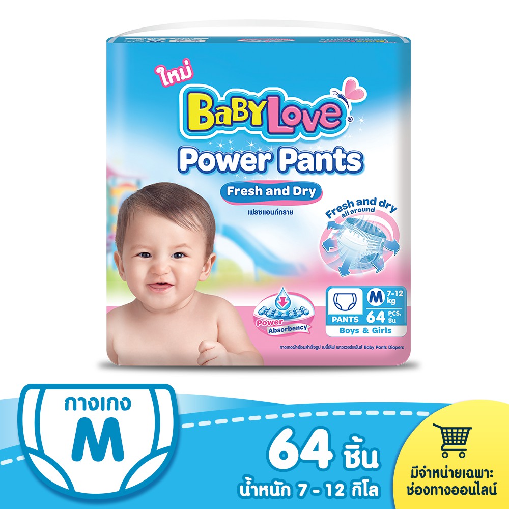 สั่งซื้อ BABYLOVE POWER PANTS กางเกงผ้าอ้อม เบบี้เลิฟ พาวเวอร์ แพ้นส์ ไซส์M (64ชิ้น)