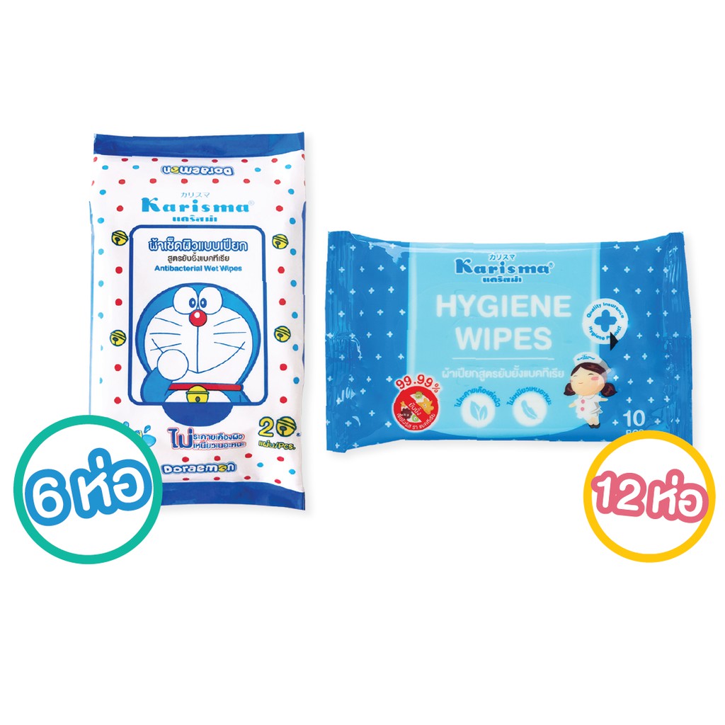สั่งซื้อ [Official Store] Karisma ผ้าเปียกสูตร HygieneWipes 10แผ่น x 12 ห่อ + Antibacterial 20 แผ่นx 6 ห่อ