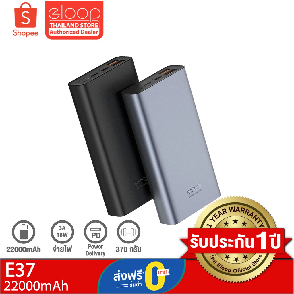 สั่งซื้อ [ส่งฟรี 0.-] Eloop E37 แบตสำรอง 22000mAh รองรับชาร์จเร็ว Quick Charge QC 3.0/2.0 + PD ของแท้ รับประก