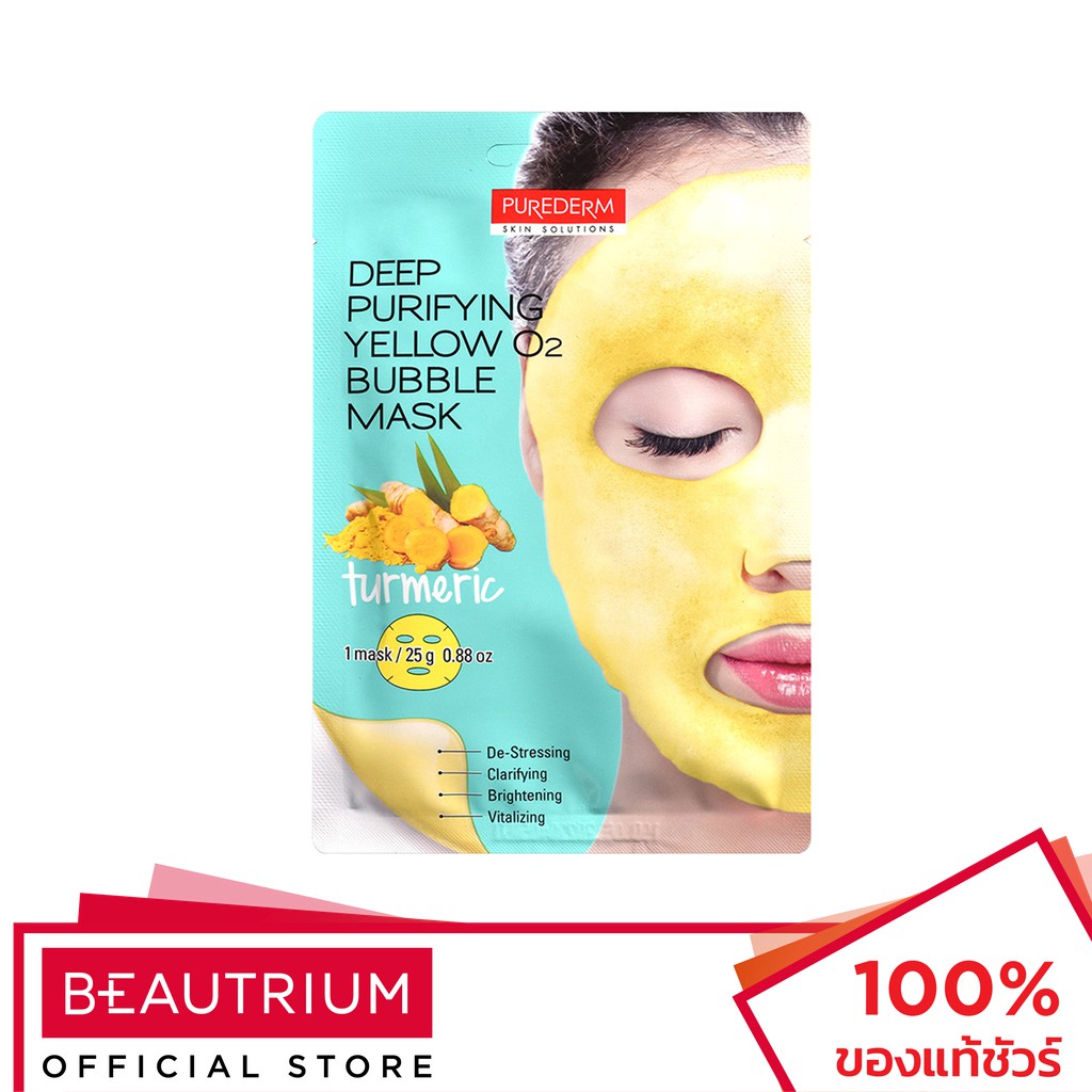 สั่งซื้อ PUREDERM Deep Purifying Yellow O2 Bubble Mask Turmeric แผ่นมาส์กหน้า 25g