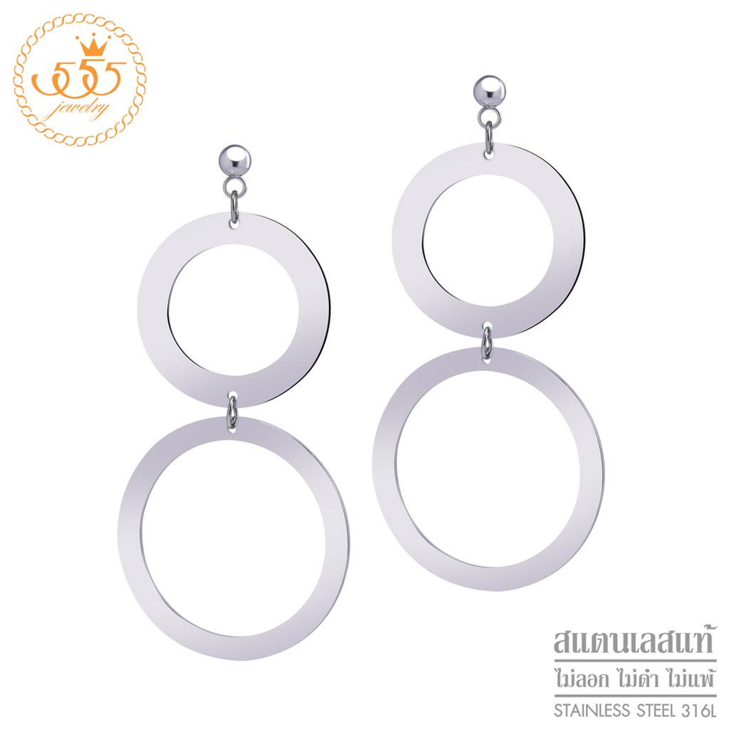 สั่งซื้อ 555jewelry ต่างหูสตั๊ด แบบต่างหูห้อย สแตนเลส รูปวงกลม รุ่น MNC-ER1113 - ต่างหูผู้หญิง ต่างหูสวยๆ ต่า