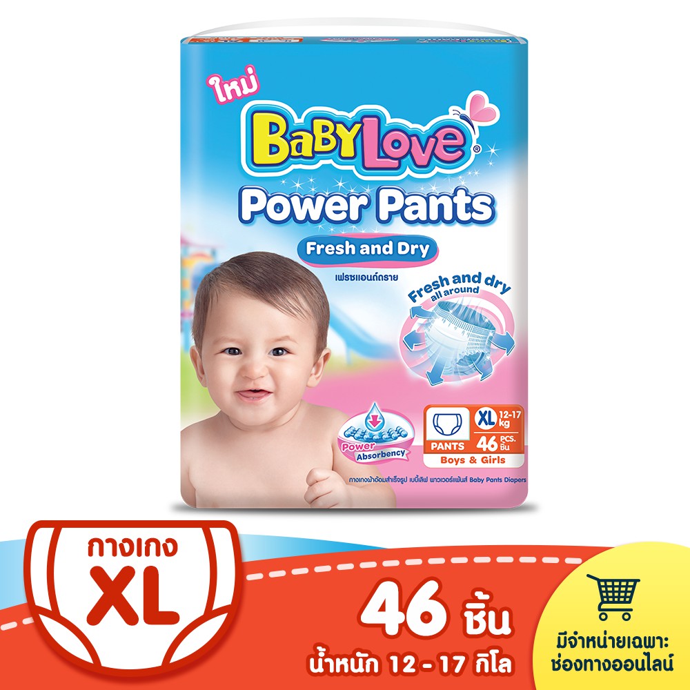 สั่งซื้อ BABYLOVE POWER PANTS กางเกงผ้าอ้อม เบบี้เลิฟ พาวเวอร์ แพ้นส์ ไซส์XL (46ชิ้น)