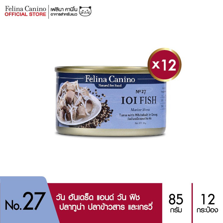 ขาย Felina Canino (อาหารสำหรับแมว) :101 Fish (วันฮันเดร็ด แอนด์ วัน ฟิช) แพค 12 กระป๋อง ราคาถูก