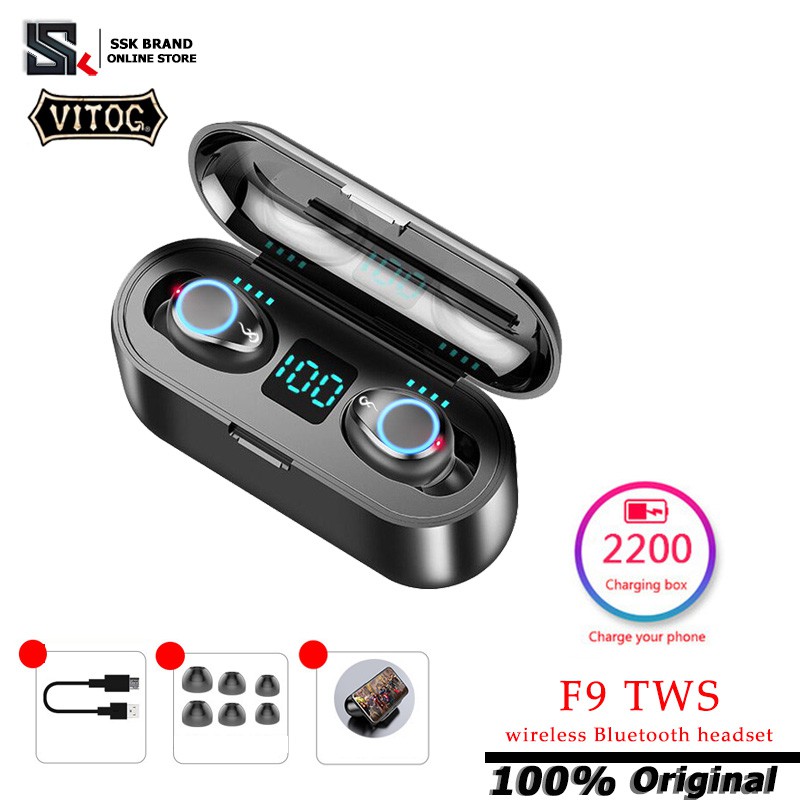 สั่งซื้อ VItog F9 TWS หูฟังไร้สาย Smart 5.0 Bluetooth matching wireless headset, 2200 Ma battery capacity