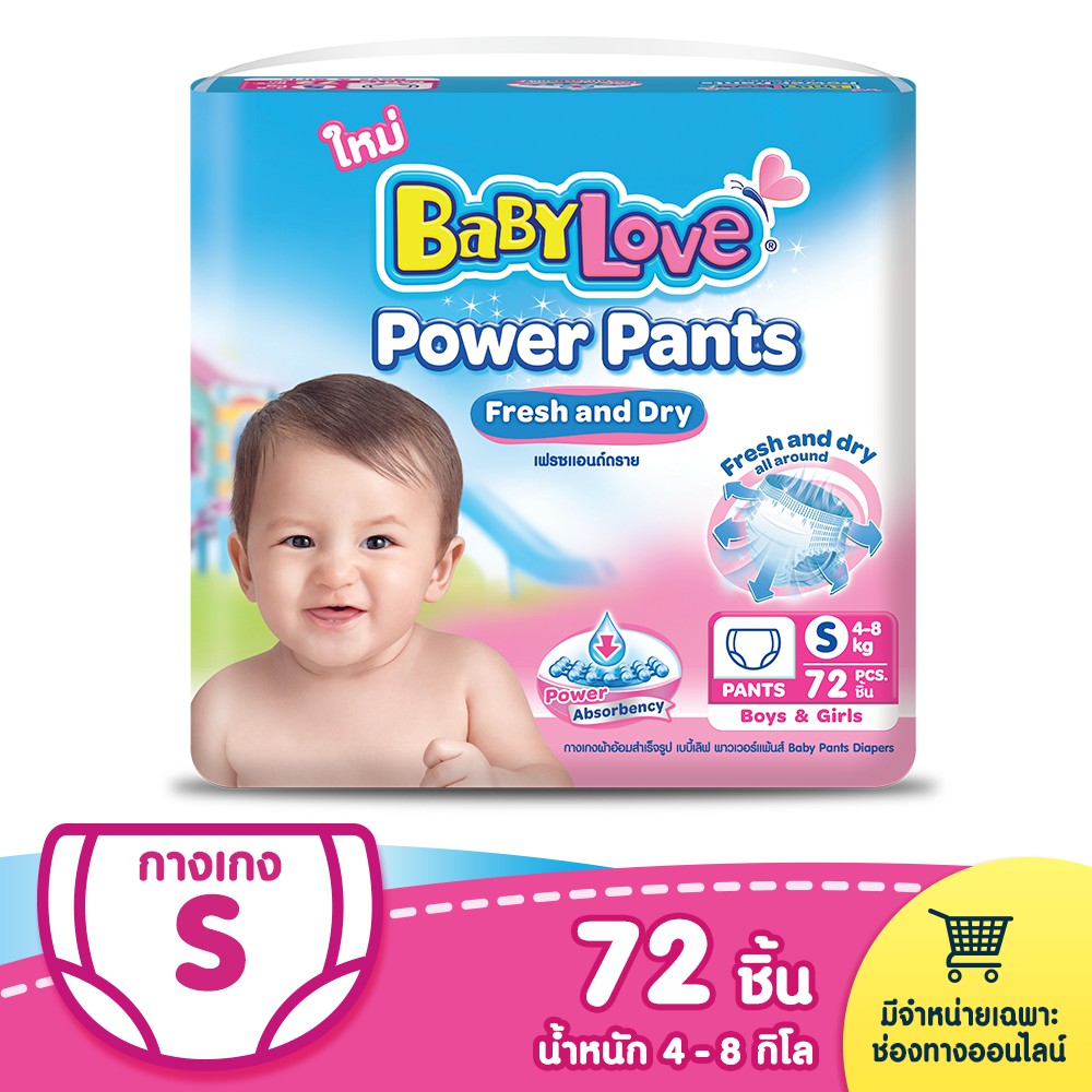 สั่งซื้อ BABYLOVE POWER PANTS กางเกงผ้าอ้อม เบบี้เลิฟ พาวเวอร์ แพ้นส์ ไซส์S (72ชิ้น)