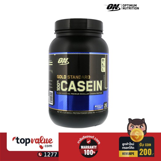 ▶▶โปรดอ่านก่อนสั่งซื้อ◀◀ ✔️สินค้าทุกชิ้นของทางร้าน Topvalue เป็นสินค้าใหม่ ของแท้ 100% สามารถออกใบกำกับภาษีเต็มรูปแบบได้ ✔️บริษัทฯ ยินดีรับเปลี่ยน / คืนสินค้า ภายใน 7 วัน ♻️ สาเหตุและข้อตกลงของการขอเปลี่ยนหรือคืนสินค้า ♻️ 1.สินค้าใช้งานแล้วมีปัญหาภายใน 7 วัน : บริษัทจะเปลี่ยนสินค้าใหม่ให้ลูกค้า 2.เปลี่ยนใจ : ไม่สามารถขอคืนสินค้าได้ แต่สามารถเปลี่ยนสีหรือรุ่นที่ราคาเท่าเดิม 3.ได้รับสินค้าผิด : สินค้ายังไม่ถูกใช้งาน และต้องอยู่ในสภาพสมบูรณ์ 4.สินค้าไม่ตรงตามที่โฆษณาไว้ : สินค้าไม่สามารถใช้งานได้ตามที่บรรยายไว้ สินค้ายังไม่ถูกใช้งาน และต้องอยู่ในสภาพสมบูรณ์ 5.สินค้าชำรุด/เสียหาย : ส่งสินค้ากลับมาให้ทางบริษัทตรวจสอบ กล่องและอุปกรณ์ต้องครบ - หากพบว่า มีปัญหาจริง บริษัทจะเปลี่ยน/คืนเงินให้ - หากพบว่า ไม่ได้มีปัญหาจริง บริษัทจะจัดส่งสินค้าเดิมให้ ✔️ทางบริษัทฯ จะรับผิดชอบค่าขนส่ง จากข้อผิดพลาดของทางบริษัทฯ เขตกรุงเทพฯ ไม่เกิน 150 บาท และ ต่างจังหวัด ไม่เกิน 300 บาท ☎️ สอบถามรายละเอียดสินค้าได้ทาง Chat หรือติดต่อ Topvalue Call center 1277 ✄============================== แนะนำสินค้า Optimum Nutrition Casein Gold Standard 2lbs - Chocolate Supreme ทำจากมิเซลล่าเคซีน ให้โปรตีนคุณภาพสูง ที่ช่วยให้ดูดซึมเข้าสู่ร่างกายอย่างช้าๆ ซึ่งบางช่วงเวลาเซลล์กล้ามเนื้อของเราควรได้รับแหล่งโปรตีนที่ค่อยๆดูดซึม อย่างช้าๆจะดีกว่า เพื่อช่วยในการพัฒนากล้ามเนื้อของเราอย่างต่อเนื่อง โดย เฉพาะอย่างยิ่งเวลานอน กล้ามเนื้อของเราก็ยังมีการพัฒนาอยู่เรื่อยๆ ดังนั้นเราควรที่จะรับประทานโปรตีนที่มีการดูดซึมช้าก่อนเข้านอน ON - OPTIMUM 100% CASEIN GOLD STANDARD ช่วยให้กล้ามเนื้อของเราได้รับโปรตีน และอะมิโนแอซิด อย่างต่อเนื่องนานถึง 7 ชม. จนเราตื่นนอน !! คุณสมบัติ OPTIMUM CASEIN GOLD STANDARD โปรตีนคุณภาพสูงที่ช่วยชลอการดูดซึมอย่างช้าๆ ให้โปรตีนสูงถึง 24 กรัม จาก MICELLAR CASEIN ต่อเสริพให้ BCAAs, Glutamine และ Glutamine Precursors มากถึง 10 กรัม มีการใช้เทคโนโลยี Enzyme AMINOGEN ในกระบวนการผลิต ทำให้คุณภาพดียิ่งขึ้น ข้อมูลพื้นฐาน 24g of Anti-Catabolic Micellar Casein Nearly 5g of Naturally Occurring BCAAs per Scoop Nearly 5g of Naturally Occurring Glutamine and Glutamic Acid per Scoop วิธีรับประทาน ทาน OPTIMUM Casein Gold Standard ทุกวัน ครั้งละ 1 ช้อน ตวง ก่อนเข้านอนประมาณ 30 นาที ผสมกับน้ำเย็น,เครื่องดื่มที่เราชื่นชอบ หรือถ้าต้องการโปรตีนเพิ่มมากขึ้น สามารถทานกับนมจืดได้ (สัดส่วนปริมาณน้ำ หรือนมจืด ขึ้นอยู่กับความชอบส่วนบุคคล : ปริมาณแนะนำ 6-8 ออนซ์) เพื่อเพิ่มความอร่อย แนะนำใส่น้ำแข็งจำนวน 3-4 ก้อน และเขย่าๆทันที !!